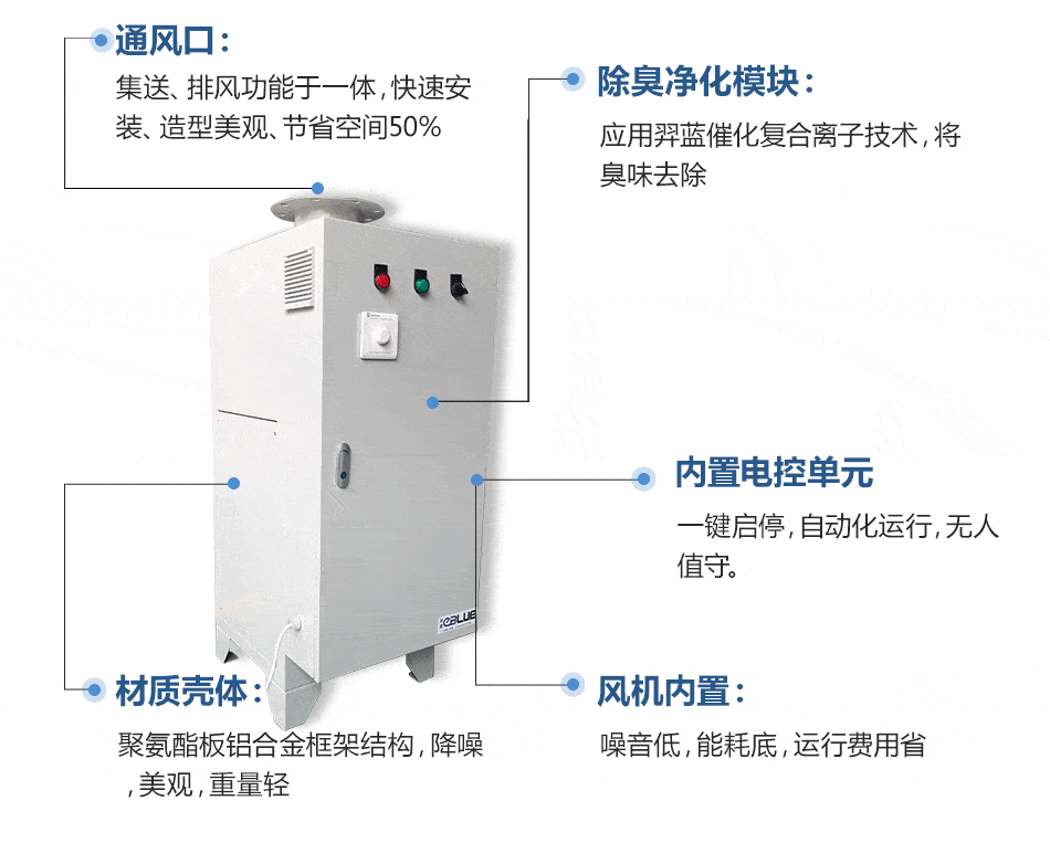 光催化除臭設(shè)備采用耦合離子催化模塊+空氣賦能模塊,起到負(fù)壓新風(fēng)置換,去除臭味的效果,從而改善環(huán)境。